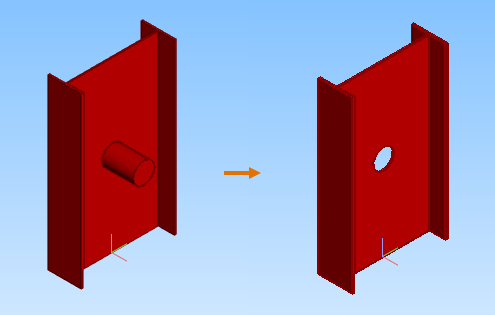 Note: Technically, a Boolean primitive is a set of polygons, which makes it more complex (and thus slower) to process and visualize than a native CADMATIC object. In drawings, Boolean objects are not as detailed and accurate as native CADMATIC objects. Therefore, Boolean operations should only be used where the required contour cannot be achieved with other methodsβfor example, a Boolean cut should only be used if a normal cut or editing the boundary curve is not an option, such as when wanting to make a non-perpendicular hole in a plate.