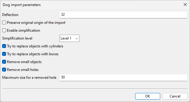 Try to replace objects with boxes – Select this option to replace approximately box-shaped bodies with a box.