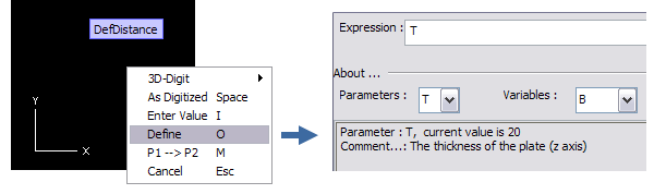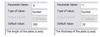 Set the thickness for the plate by selecting the command Define from the context menu (or press O) and use parameter T as the value.