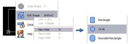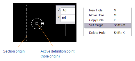 Note: The Set Origin command defines the location of the hole's origin, not the origin of the section or shape.