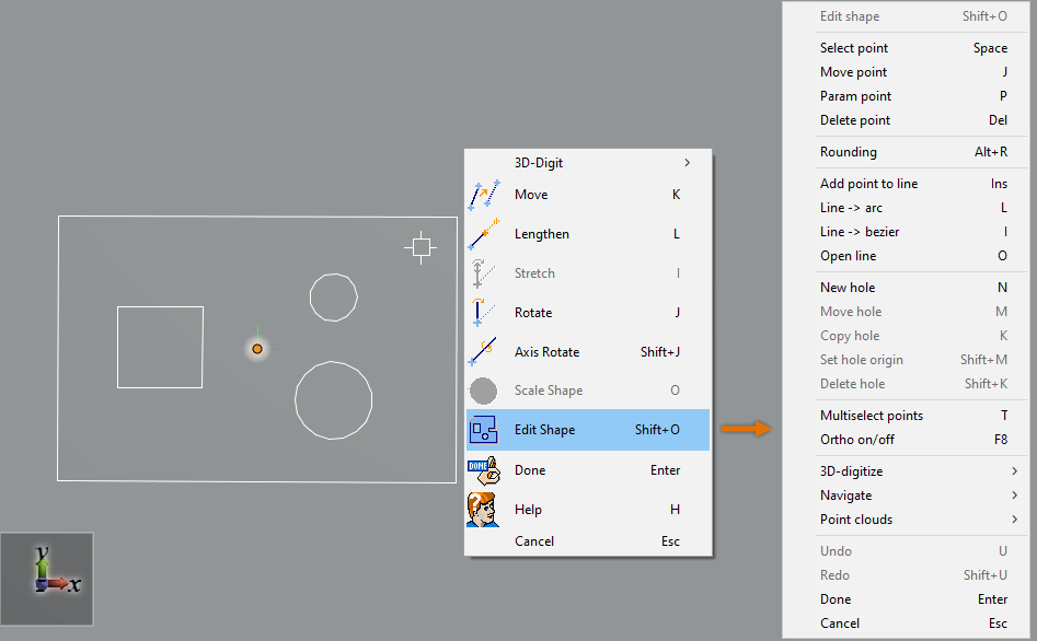Press N to activate the New hole command. The shape menu opens.
