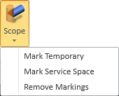 Select Scope > Remove Markings to remove markings from a primitive that has been marked as temporary object or Service Space.