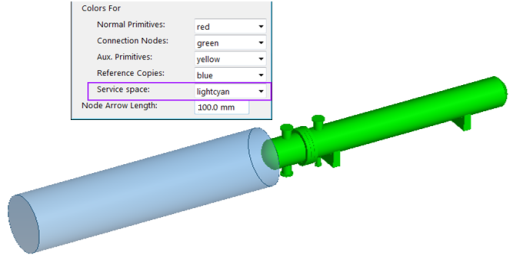 The primitive is shown as transparent and it uses the color defined for Service Spaces in the appearance settings. You can change the color from Tools > Appearance, as described in Appearance.