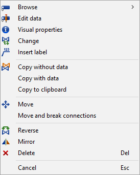 The project administrator can modify the look of the connector symbol and the connector text. The connector's color can be set via Drafting > Annotate > Symbol > Insert (see Symbol) or via Options (see User Interface).