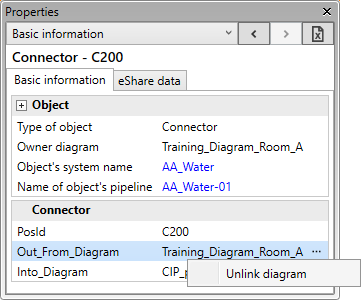 In the Out_From_Diagram or Into_Diagram field, select … > Unlink diagram.