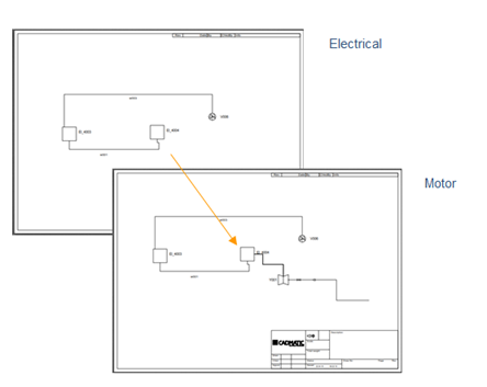 The picture below shows two diagrams: "Electrical" and "Motor". The objects in these diagrams are partly the same and thus linked to the same Position IDs.