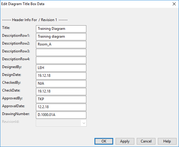 Select File > Document > Edit Title Box. The Edit Diagram Title Box Data dialog opens.