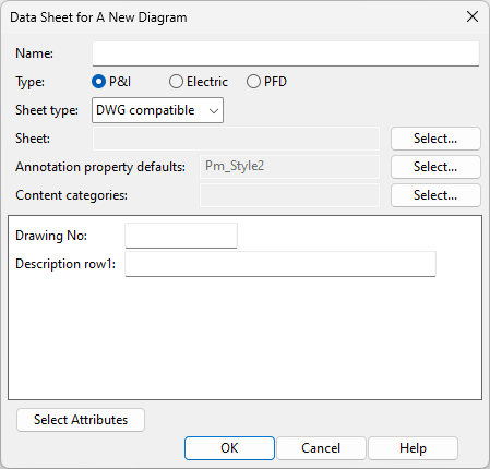 Administrator has defined drawing sheets for diagrams, as described in P&ID Sheets.
