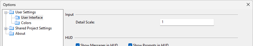 Show messages in HUD – If selected, error notifications and other information are shown next to the cursor. If not selected, the information is only shown in the message pane (if displayed).