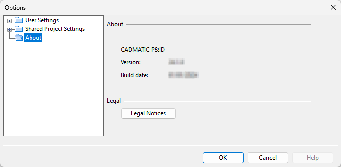 You can click Legal Notices to see a list of third-party software used by CADMATIC P&ID. The list opens in the default text editor program of your computer.