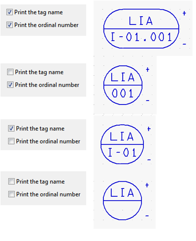 Print the tag name, Print the ordinal number – Select whether to print tag name and ordinal number to instrument tags.