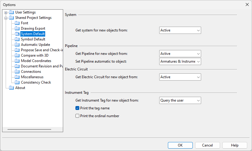 Get Instrument Tag for new objects from – Select whether a new object should get instrument tag from currently active instrument tag or prompt the user to select one.