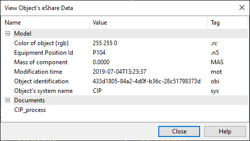 Or, the diagram has been published to eShare and eShare has an external adapter (such as Microsoft Excel adapter) that adds data to the model object. This additional data can be viewed in P&ID even if Plant Modeller has not published the 3D model to eShare yet.