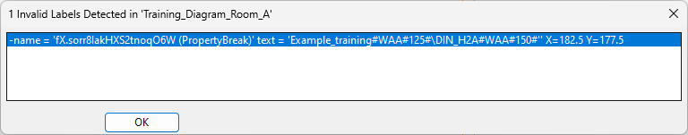 If problems are found, the tool displays a list of invalid labels:
