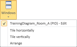 Select Windows to arrange the open diagram windows. The same command can be found from the Status bar.