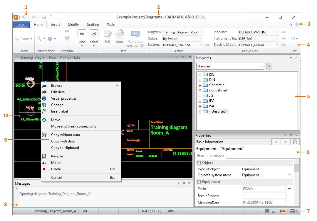 - The status of the active diagram: "Browse", "Edit" or "Modified".
