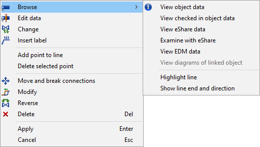 The Browse node of the context menu of diagram objects can contain the following commands.