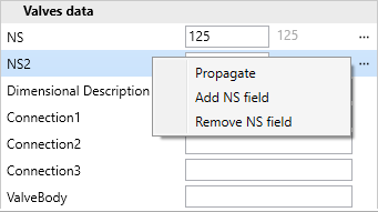 You can add or remove NS fields. This might be needed for reducing valves or release valves. Removal is only possible when the value is 0.
