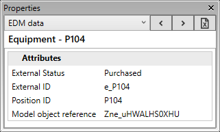 The eShare data tab displays P&ID related object data that is stored in CADMATIC eShare. Opening this tab loads the data of the currently selected diagram object from eShare, if the object has a position ID that can be found in eShare.