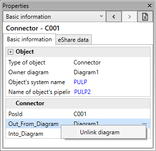 Unlink object – Unlinks the current diagram object. You must enter a new PosId for the object. After this, the current object will have its own data in the database, instead of using shared data.