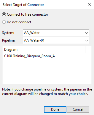 In the Select Target of Connector dialog, select the target connector and click Done.