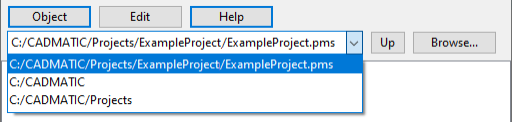 The CADMATIC desktop shows objects one directory at a time. The commands in the Object menu reflect where you are in the directory structure and what type of object is currently selected.