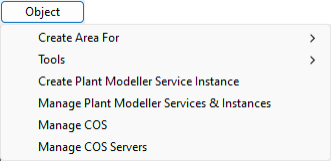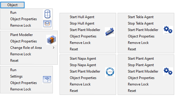 When in the workspace folder and a specific application or Agent area is selected, the Object menu contains items specific to that application or Agent.