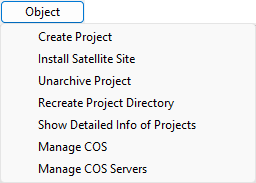 Recreate Project Directory | Allows recreating the project directory when COS server has been restored from backup and project directory was not included in it. | Restoring a backup |