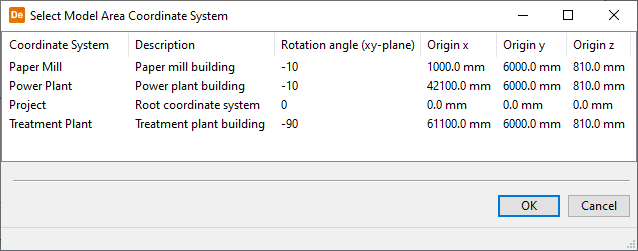 After selecting the area type to be created, if project administrator has defined local coordinate systems, you are prompted to select which coordinate system to use for the new area. The default, non-rotated coordinate system is called "Project".