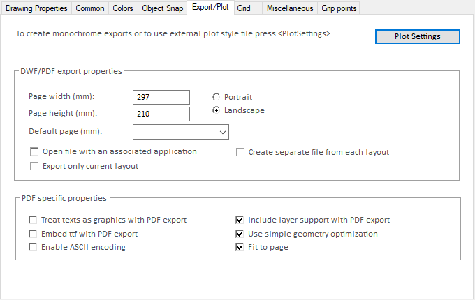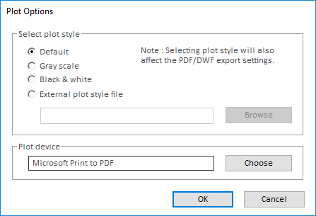 Plot – Allows printing the current drawing, using the device specified in Plot Options.