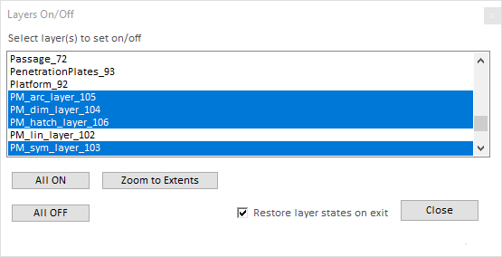 – Opens the Layers On/Off dialog for selecting which layers to show.