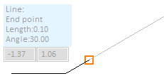 In this example, polar tracking is enabled and polar angle is set to 30°. The user first draws a horizontal line segment and then changes the direction, and polar tracking indicates when the line is at a 30° angle.