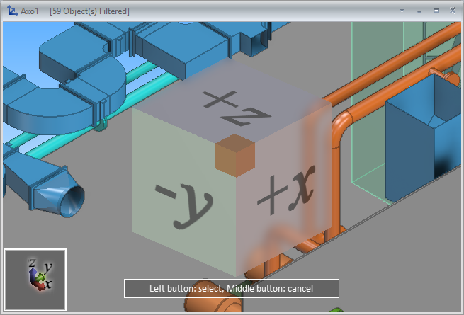 To open the view cube, press Ctrl and click the middle button (mouse wheel) once. The cube is displayed over the current view, as shown below.