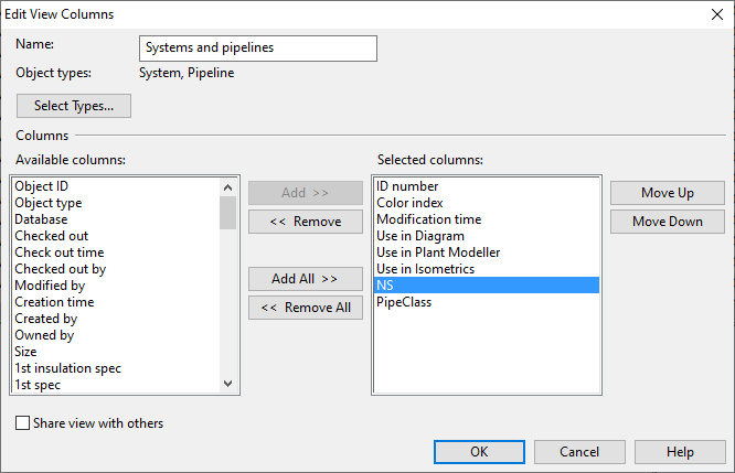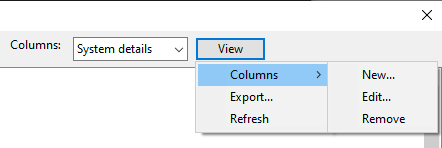 In the object browser dialog, select View > Columns > New or … > Edit, as applicable. The Edit View Columns dialog opens.