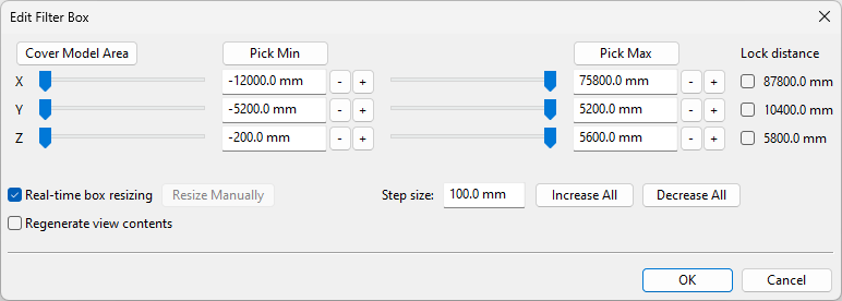 Click Pick Min/Pick Max to pick the min/max corner of the filter box from the model.