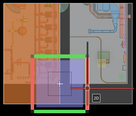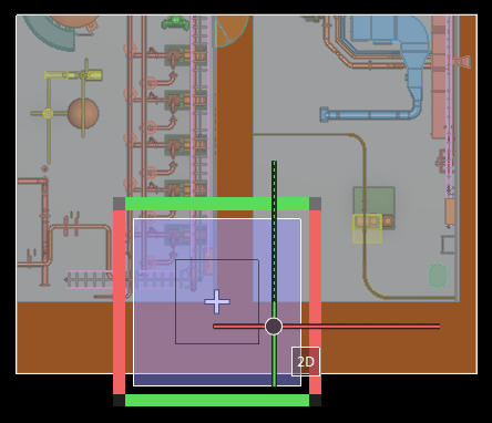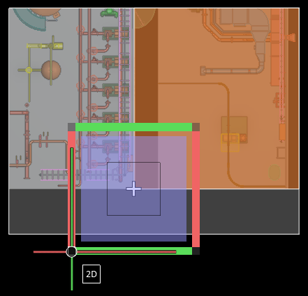 – If the user selects the second square from the center of the tool, the filter box minimum in current view direction is moved along the Z axis to the cursor position. The X and Y limits of the filter box remain unchanged. Because the cursor is on the floor surface, anything on top of the floor object would be outside the box and not displayed.