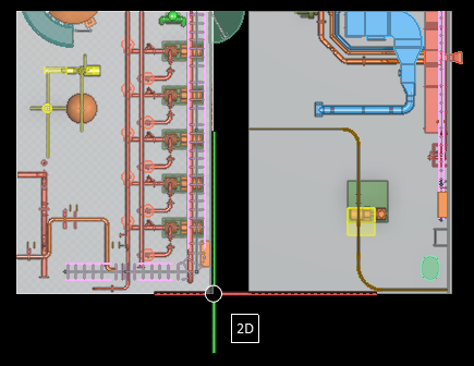 In this example, the user has navigated to the floor surface in the lower-right corner of the room on the left, in a shaded top view.