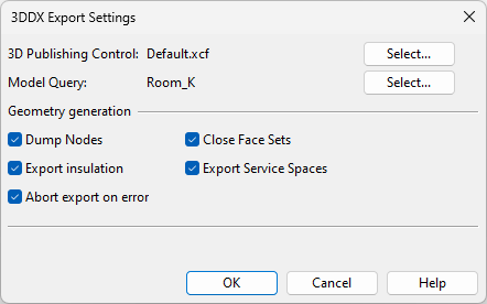 Note: For information on including service spaces in the export, see Exporting service spaces to 3DDX.