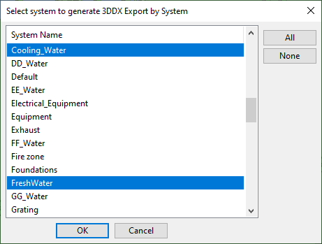 Typically, the 3DDX file should contain a subset of the 3D objects that are included in the Plant Modeller area. The desired subset can be, for example, all the objects that belong to a specific System or Group, or have a specific attribute or attribute value.
