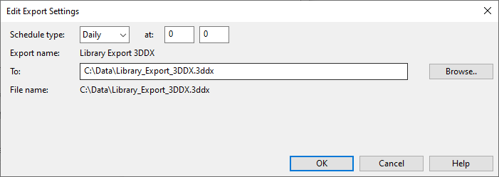 Then click OK. The 3DDX library export is now scheduled to occur at the specified time.