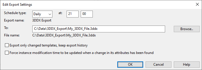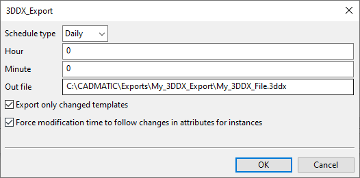 Then click OK. The 3DDX export is now scheduled to occur at the specified time.