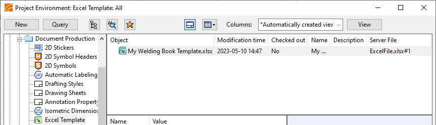 Select New > Excel Template, select the file %PMS_HOME%/pi/templates/WeldBookTemplate.xlsx (or your own template file), and click Open.