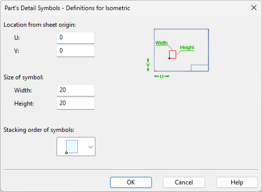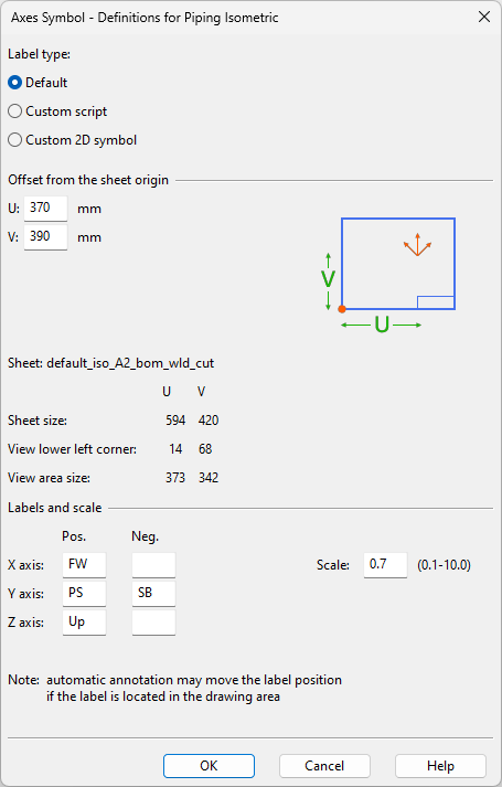 Offset from the sheet origin – Define the offset from the sheet origin (default symbol, custom script) or from the top-right corner of the drawing area (custom 2D symbol).