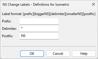 Clicking Define opens the NS Change Labels dialog where you can define the following settings.