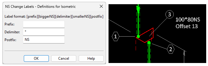 NS change – Select this option to enable the insertion of nominal size change labels.