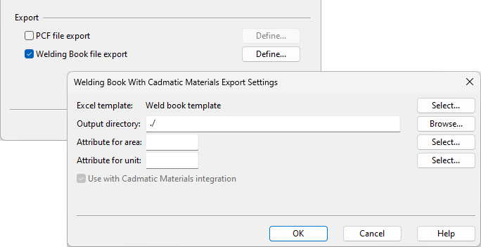 Welding Book file export – Welding Book file export allows Plant Modeller to interface with the Welding Book weld management application by exporting the welds of an isometric drawing to a Microsoft Excel file. For more information, see Welding Book Link.
