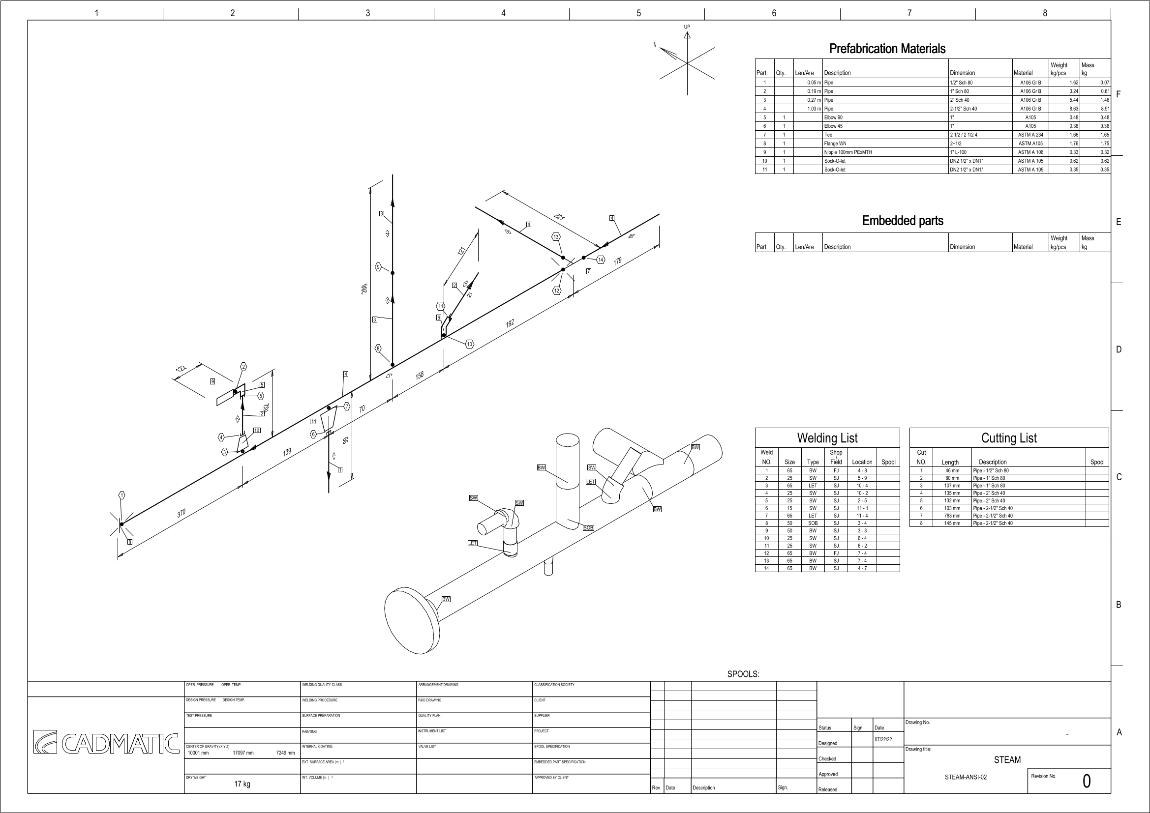 In the CADMATIC example project, the "Cadmatic_spool" drawing sheet and ICGD have a weld/joint table.