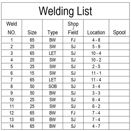 Spool – Number of the spool that contains the weld. If the weld is on the border of two spools, then the number of the second spool is shown.