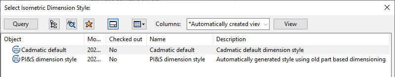 Clicking Select Style opens a dialog for selecting which Isometric Dimension Style to use for the dimensions.