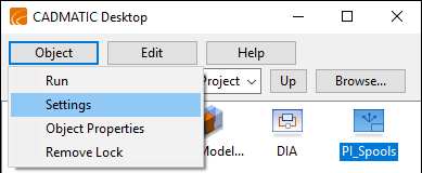 To define the settings, select the Piping Isometrics & Spools icon in the CADMATIC desktop and then Object > Settings.